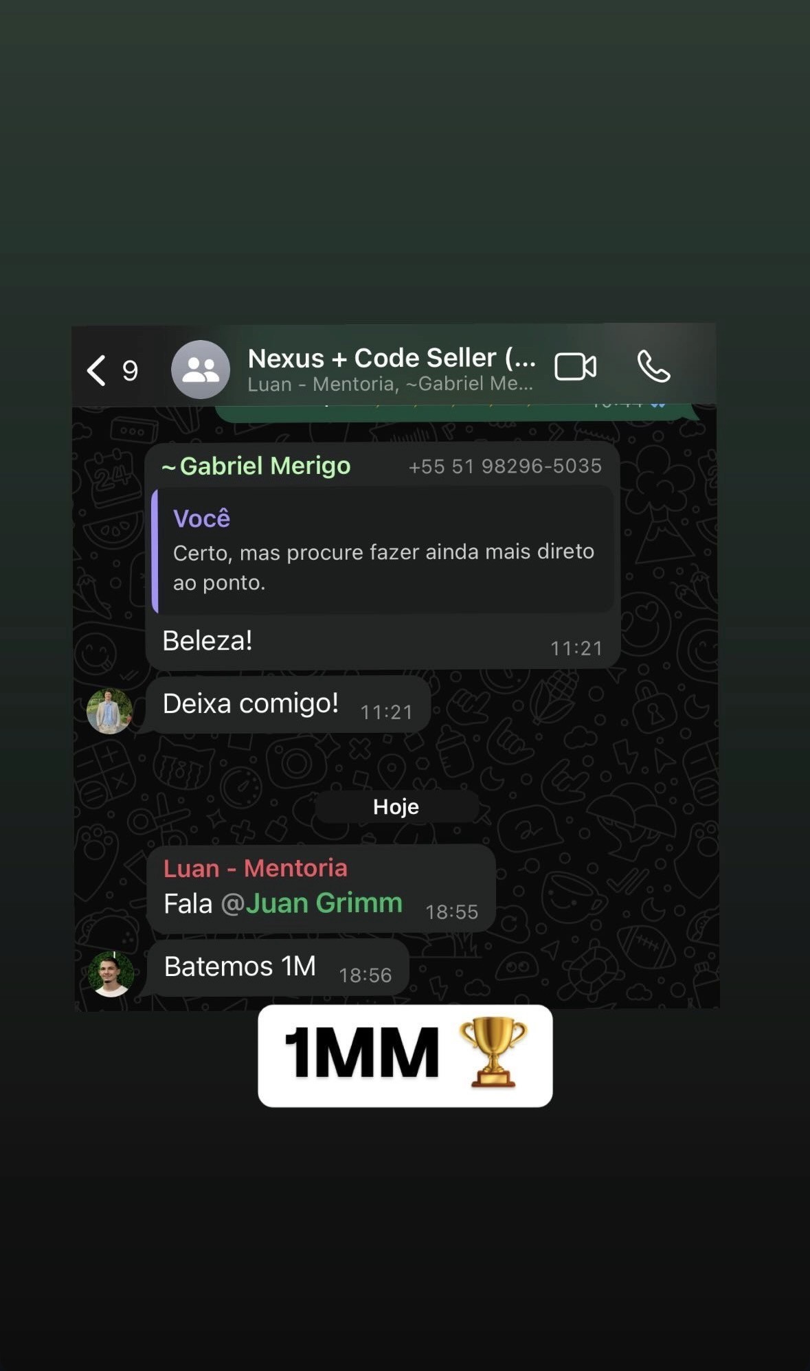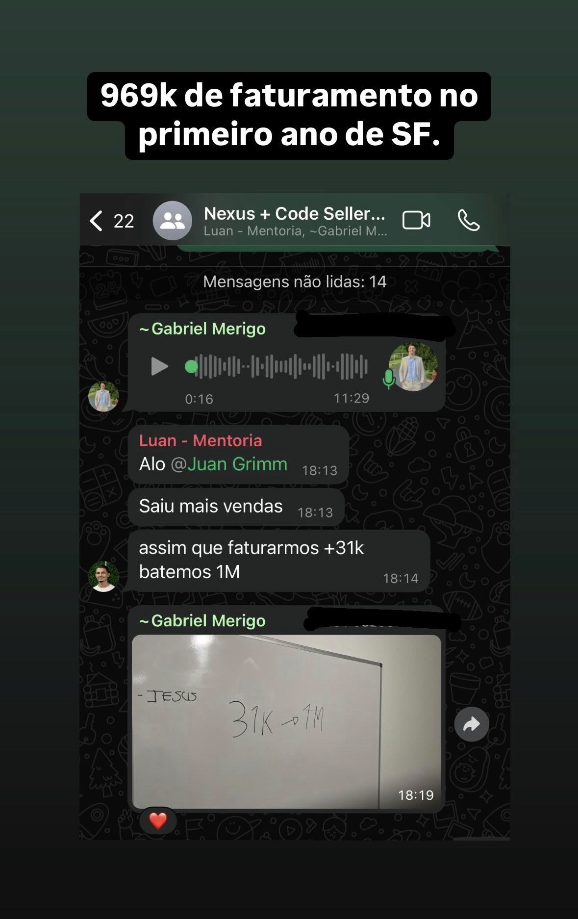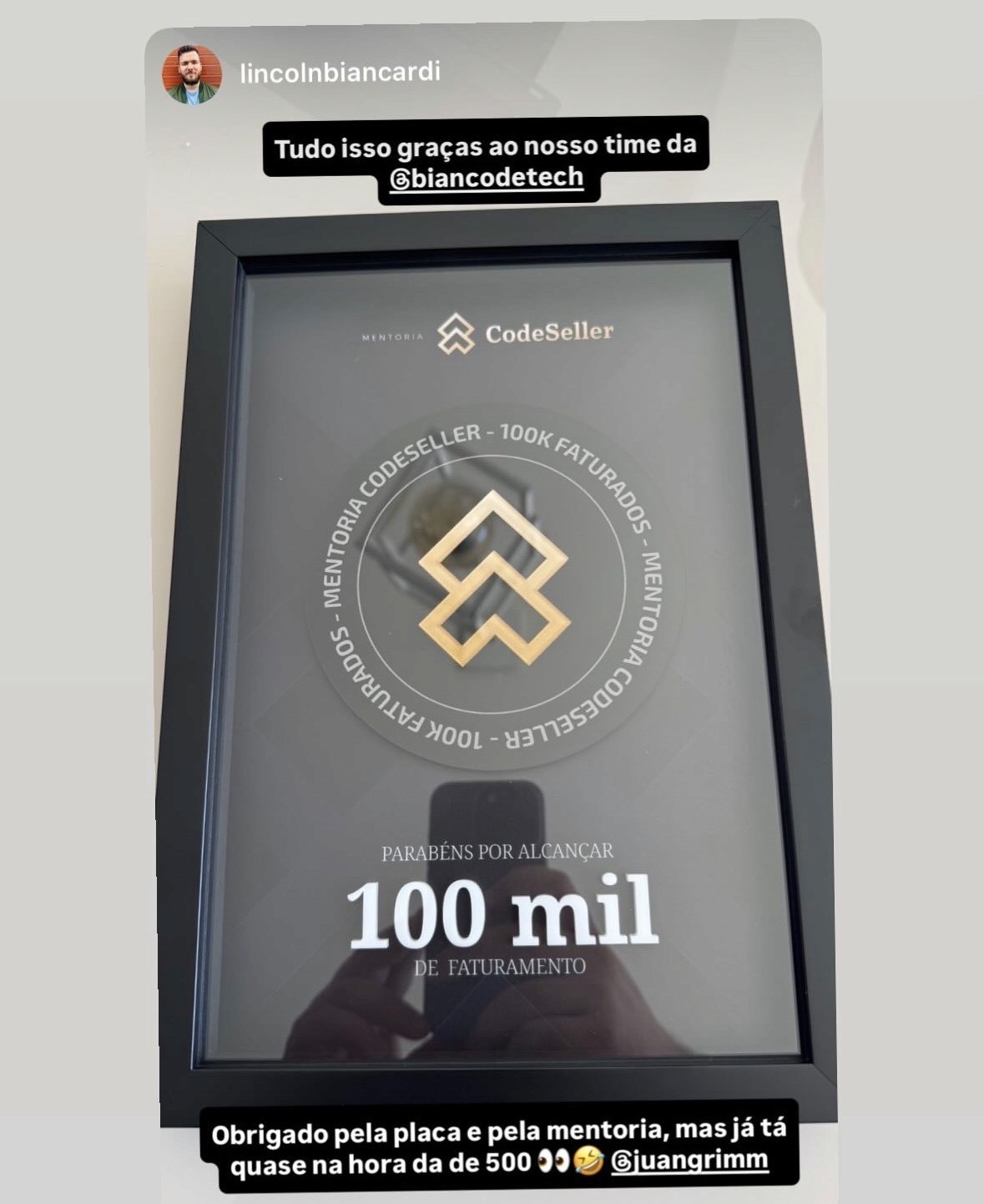 "Gostaria de expressar meu profundo agradecimento ao programa de mentoria CodeSeller e, em especial, ao meu instrutor Juan Grimm. A experiência no CodeSeller foi transformadora, me proporcionando não apenas conhecimento técnico sólido, mas também um direcionamento estratégico para o meu negócio.